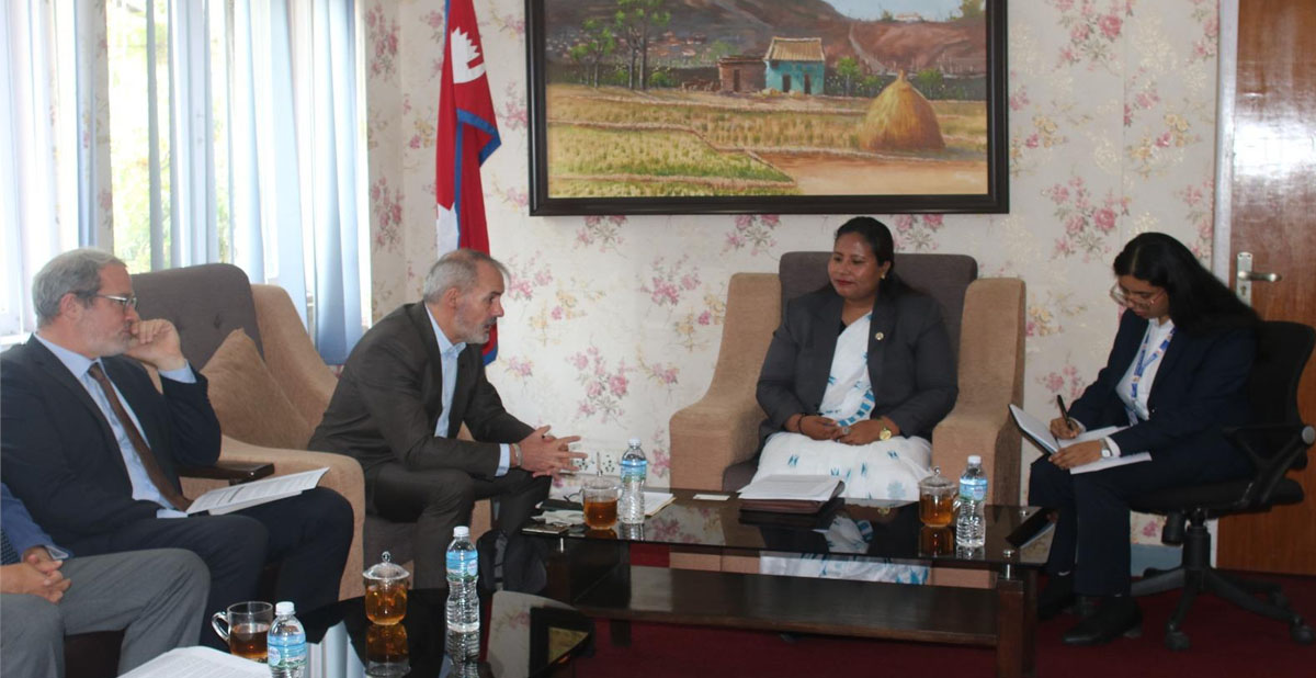 काठमाडौं- कृषि तथा पशुपन्छी विकास र वन तथा वातावरणमन्त्री गीता चौधरीसँग नेपालका लागि एसियाली विकास बैंक (एडिबी) का देशीय निर्देशक अर्नाउड काउचोइसले भेटवार्ता गरेकी छन् । कृषि मन्त्रालयमा भएको भेटमा उनीहरूबीच कृषि क्षेत्रको विकास, लगानी विस्तार, सहकार्य सुदृढ गर्नेलगायत विषयमा छलफल भएको मन्त्री चौधरीको सचिवालयले जनाएको हाे ।