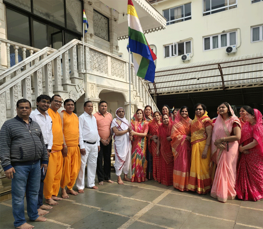 अध्यक्ष सुभाष जैन सेठीले भने, ' यस दिन मन्दिर स्थापनाको वार्षिक उत्सव भएकोले मन्दिरको नयाँ झण्डा पनि स्थापित गरिएको छ।' पवन जी चन्द जैन गोधा परिवारले झण्डा फहराउने काम सफतापूर्वक गरे। सबैले हातमा जैन झण्डा समातेर जोश र उत्साहका साथ भक्तिभाव प्रदर्शन गरेर जैन एकता प्रदर्शन गरे।