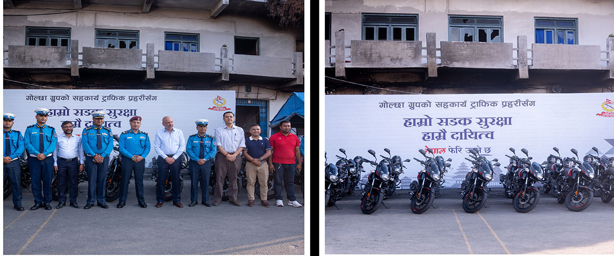 काठमाडौं- गोल्छा ग्रुपले काठमाडौं उपत्यका ट्राफिक कार्यालय(बग्गीखाना)लाई २० थान बजाज मोटरसाइकल हस्तान्तरण गरेको छ।मंगलबार रामशाहपथस्थित ट्राफिक प्रहरी कार्यालय बग्गी खानाको कार्यालयमा आयोजित एक कार्यक्रमका बीच ट्राफिक व्यवस्थापनमा सहयोग गर्ने उद्देश्यले २० थान मोटरसाइकल हस्तान्तरण गरेको हो।