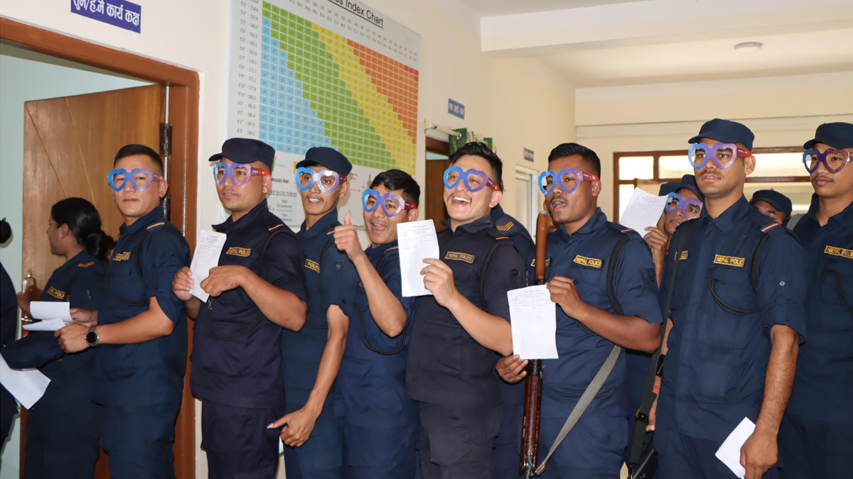 काठमाडौं - विश्व दृष्टि दिवसका अवसरमा सुरक्षाकर्मीको निः शुल्क आँखा परीक्षण गरिएको छ । नेपाल नेत्रज्योति सङ्घले आफ्ना देशभर रहेका अस्पताल, उपचार केन्द्र तथा सञ्चाल मार्फत् सो सेवा प्रदान गरेको हो ।