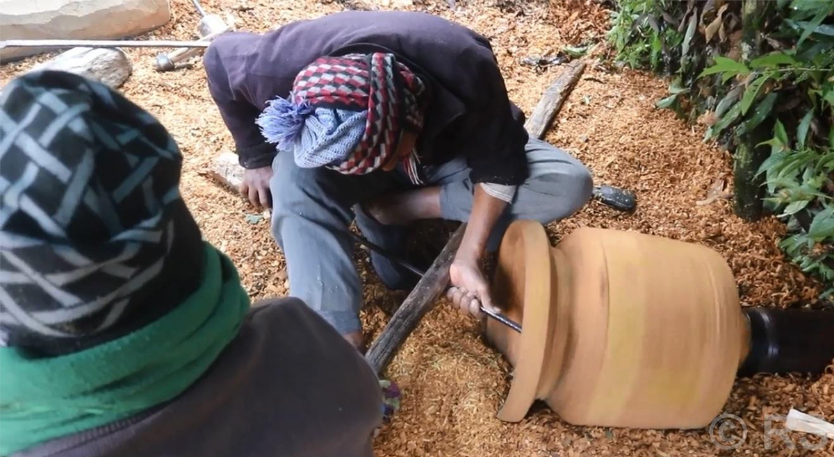 गाउँघरमा पाइने गोगुन, पँयू, दार, मौवा, कटहरजस्ता काठबाट गोलिया तयार गरी फलामको धारिलो हतियार ‘बाँक’ प्रयोग गरेर ठेकी, हर्पे, तोङ्बाको भाँडो, गम्बुलगायतका सामग्री बनाउने चलन आज पनि केहीले निरन्तरता दिइरहेका छन् ।काठलाई आकार दिन उनीहरूले अझै पनि परम्परागत विधि प्रयोग गर्छन् । खोलाबाट पानी डुँढमा खसालेर काठ घुमाउने र त्यसपछि हातले यन्त्र चलाएर कुद्ने शैली अहिले पनि प्रयोगमा रहेको छ ।