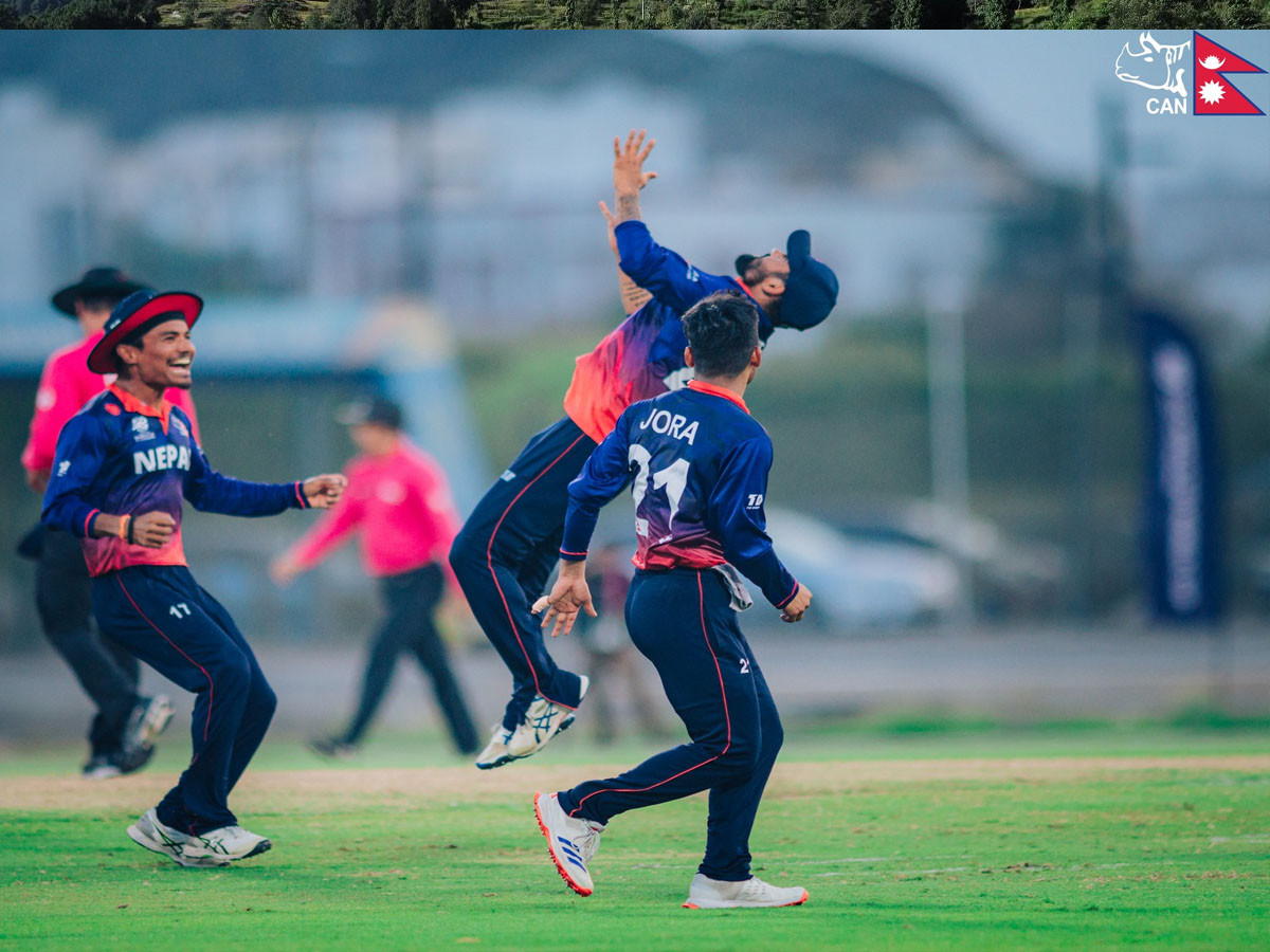 नेपालका लागि दीपेन्द्रसिंह ऐरीले तीन विकेट लिँदा गुल्सन झा, सन्दीप लामिछाने र सोमपाल कामीले समान एक–एक विकेट लिए । त्यसअघि टस जितेर पहिले ब्याटिङ गरेको नेपालले निर्धारित २० ओभरमा छ विकेट गुमाएर १४० रनको योगफल बनाएको थियो । नेपालका लागि आसिफ शेखले ४७ बलमा ५१ रन बनाए । यस्तै, कुशल भुर्तेलले २८ रन तथा कप्तान रोहित पौडेले २० तथा गुल्सन झाले १४ रन बनाए ।