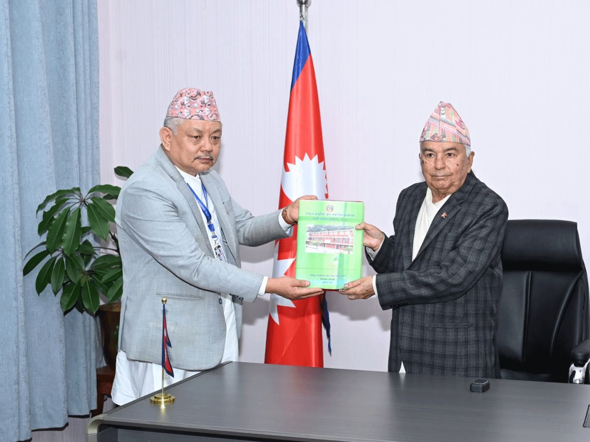 काठमाडौं- राष्ट्रपति रामचन्द्र पौडेलसमक्ष राष्ट्रिय प्राकृतिक स्रोत तथा वित्त आयोगको आर्थिक वर्ष २०८१/८२ को वार्षिक प्रतिवेदन पेस गरिएको छ ।
