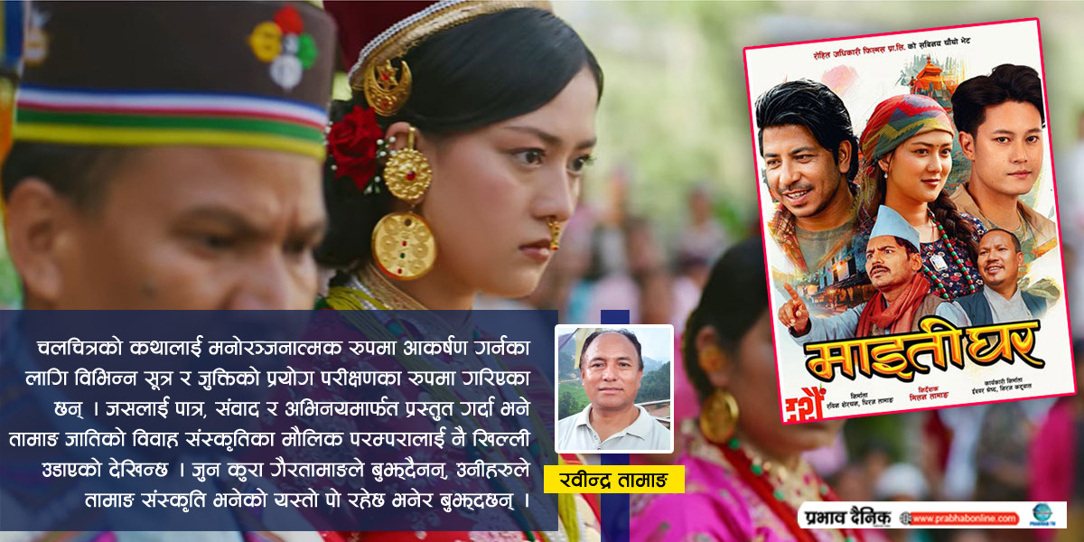 दसैंको साइत पारेर राजधानीका चलचित्र हलहरुमा असोज १३ गतेदेखि ‘माइतीघर’ नामक चलचित्र प्रदर्शन भइरहेको छ। चलचित्रले राम्रो व्यापार गरिरहेको समाचार पनि आइरहेको छ। यसैले होला, तामाङ समाजका व्यक्तित्वहरु सिनेघर धाइरहेको सामाजिक सञ्जालबाट थाहा पाउन सकिन्छ। मैले पनि असोज २६ गते माइतीघर हेर्ने मौका पाएँ। पहिलो तामाङ चलचित्र ‘सेमरी छोरङान’देखि पछि बनेका थुप्रै तामाङ चलचित्रको समीक्षा गर्ने मौका पाए पनि व्यस्तताका कारणले उक्त कार्यलाई निरन्तरता दिन सकिनँ। हालै माइतीघर चलचित्र हेरिसकेपछि समीक्षात्मक लेख लेख्ने प्रयास गरेको छु।