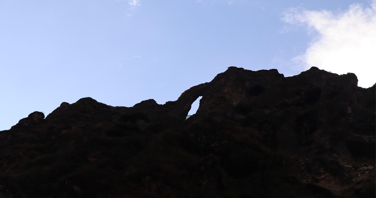 म्याग्दी– सुख्खा पहाडको टुप्पोमा टाढैदेखि देखिने गोलो आकारको प्वाल । झट्ट हेर्दा मानव निर्मित प्रवेशद्वार जस्तै देखिने यो प्वाल प्राकृतिक हो । म्याग्दीको अन्नपूर्ण गाउँपालिका–४ मा रहेको यो दृष्य अनौठो र सुन्दर देखिन्छ । पहाडको फेदीबाट हेर्दा आकाश देखिने भएकाले स्थानीयद्वारा ‘स्काई केभ’ (आकाशे गुफा) नामाकरण गरिएको छ ।