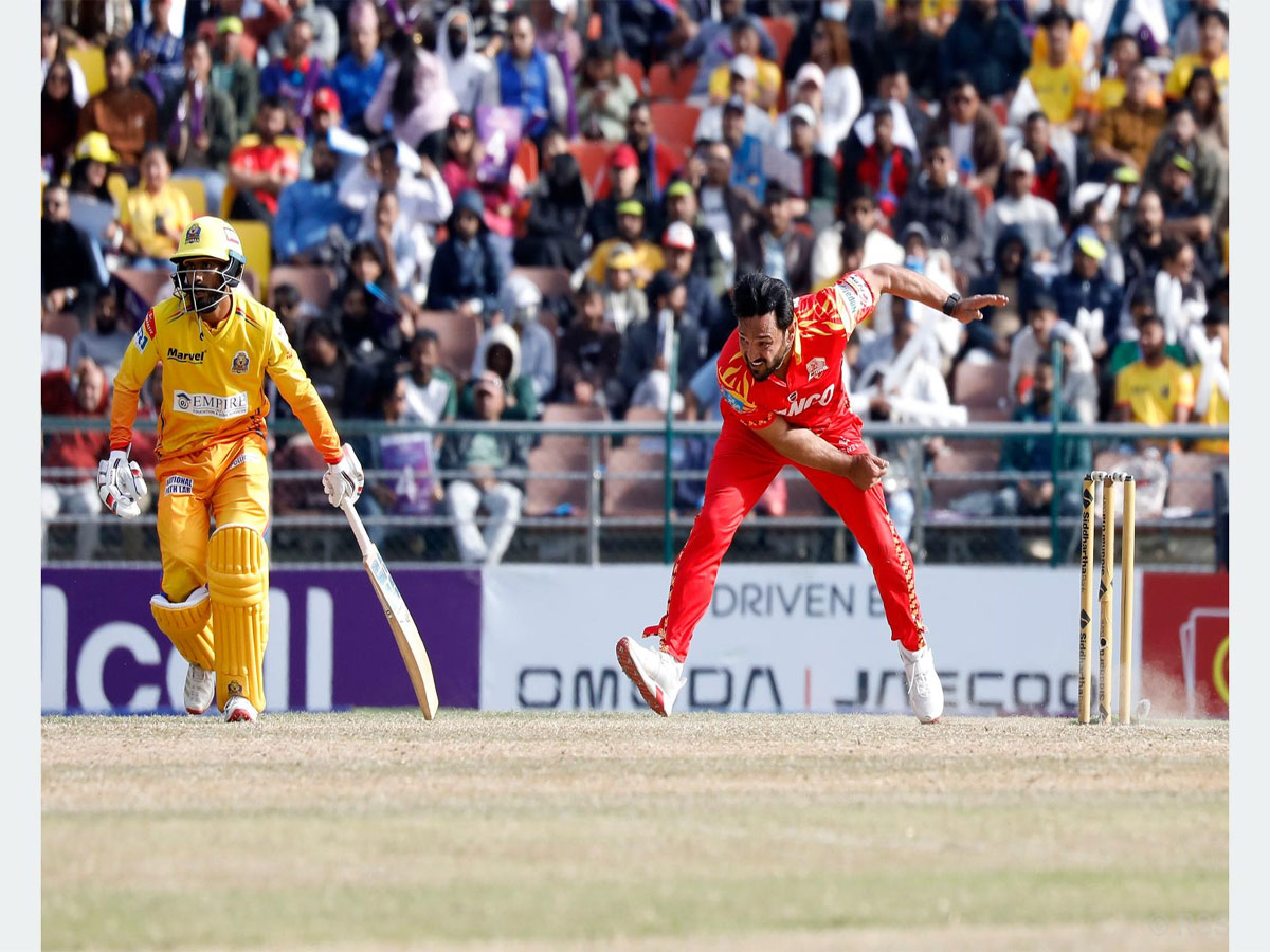 यस्तै आरिफ शेखले ३७ बलमा ४ चौका र एक छक्का मदतमा ३९ रन बनाए । क्रिकेट लिनले १९ रन योगदान गरे भने जोश ब्राउन ९ रनमा आउट भए । बलिङमा लुम्बिनीका रुबेन ट्रम्पलम्यान, अभिशेष गौतम र तिलक भण्डारीले समान एक/एक विकेट लिए ।