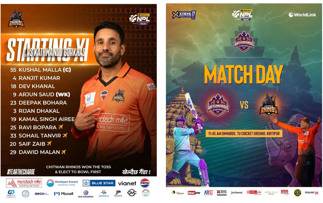 त्रिवि अन्तरराष्ट्रिय क्रिकेट रंगशाला, कीर्तिपुरमा चितवनले टस जितेर बलिङ रोजेको छ । कुशल मल्लको कप्तानीमा रहेको चितवन तीन खेलबाट चार अंक जोड्दै अंकतालिकाको तेस्रो स्थानमा छ । आजको खेल जितेर चितवन ‘प्लेअफ’को आफ्नो बाटो फराकिलो बनाउन चाहन्छ ।