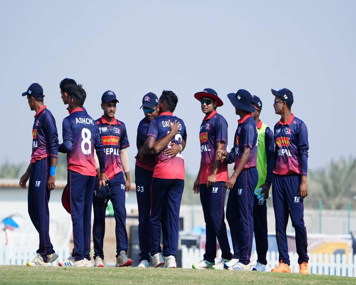 यसअघि अजमानस्थित करवान मैदानमा टस हारेर पहिला ब्याटिङ गरेको आयोजक युएई ४५ दशमलव पाँच ओभरमा १४७ रनमा अलआउट भयो । जसमा अहमद खुदादादले सर्वाधिक ७१ रन जोडे । नेपालका दयानन्द मण्डलले छ, अपराजित पौडलले दुई, कप्तान अशोक धामी र नितेसकुमार पटेलले एक/एक विकेट लिए ।