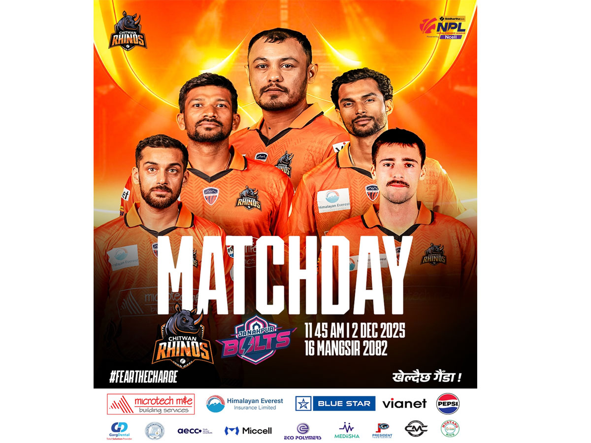 काठमाडौं - राजधानीमा जारी दोस्रो संस्करणको नेपाल प्रिमियर लिग (एनपिएल) अन्तर्गत आजको पहिलो खेलमा जनकपुर बोल्ट्स र चितवन राइनोज भिड्दैछन्।
