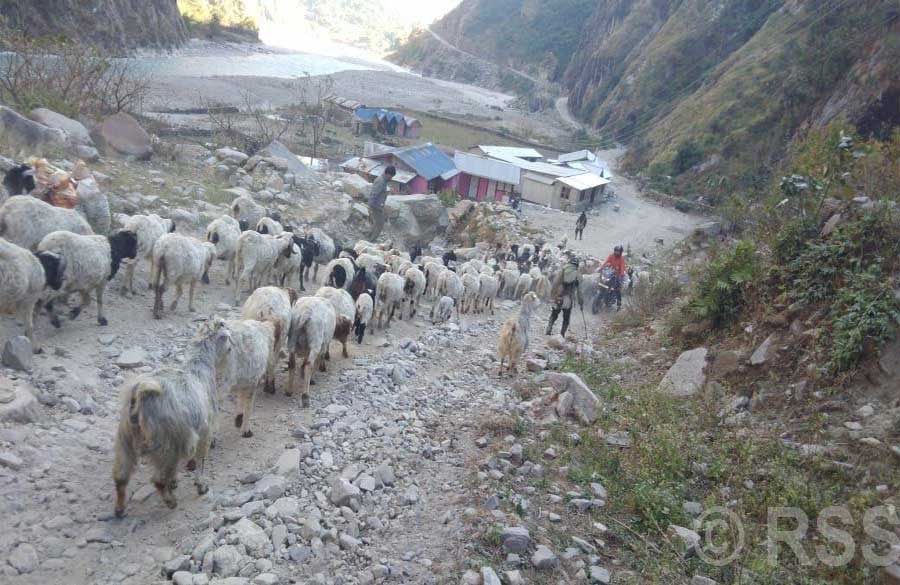 “बुधार मात्रै ३०० जति भेँडा तल झारेका थिए । आज तीन जना गोठालाका ३४० वटा भेँडा एकैपटक लावालस्कर लाएर तल झारिरहेका छन्”, उनले भने, “गोठालाहरू कुकुरसहित टोली बनाएर हिँड्छन् । बाटोबाटो भेँडा बेच्दै गुजारा चलाउँदै वैशाख लागेपछि नबिकेका भेँडाको बथान लिएर गाउँ फर्कन्छन् ।”