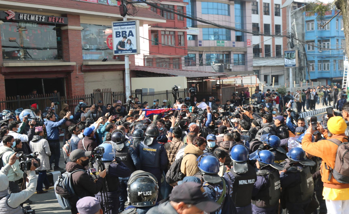 जेन्जी समूहले उठाएका माग, मुद्दा सम्बोधन नभएको भन्दै माइतीघर मण्डला क्षेत्रमा नाराबाजीसहित प्रदर्शनमा उत्रेका आठ जनालाई नियन्त्रणमा लिएको जिल्ला प्रहरी परिसर काठमाडौँका प्रवक्ता एवं प्रहरी उपरीक्षक पवनकुमार भट्टराईले जानकारी दिए ।