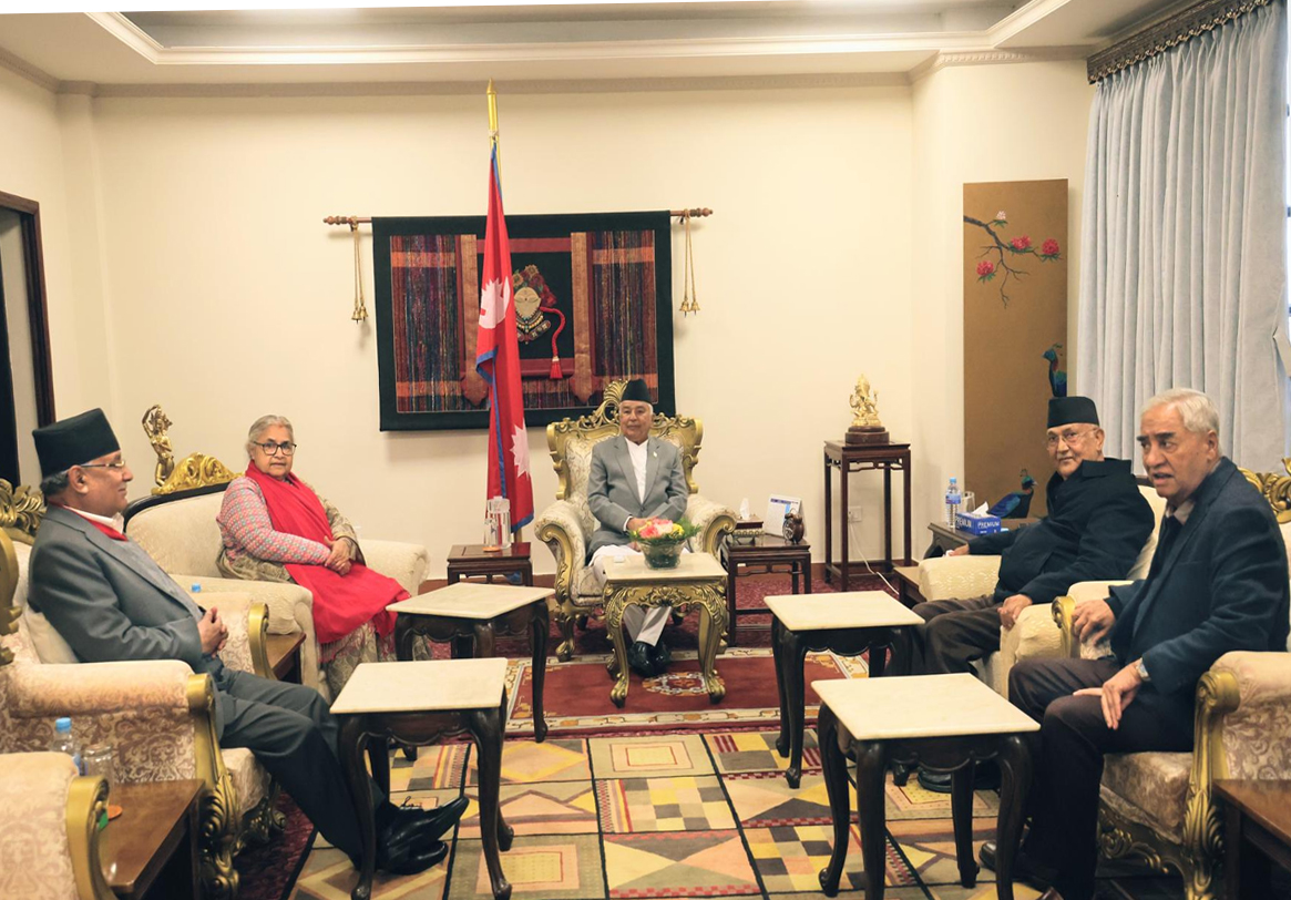 नेपाली कांग्रेसका सभापति शेरबहादुर देउवा, नेपाल कम्युनिष्ट पार्टी (एमाले) का अध्यक्ष केपी शर्मा ओली र नेपाली कम्युनिष्ट पार्टीका संयोजक पुष्पकमल दाहाल ’प्रचण्ड’ ले संयुक्त रुपमा भेट गरेका हुन् ।