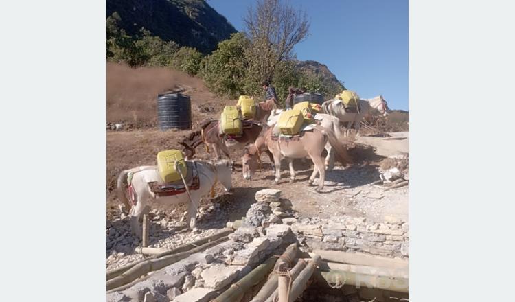 डोल्पाबाट हिँडेका सात वटा खच्चर जाजरकोट, रुकुम पश्चिम, रोल्पा, प्यूठान हुँदै अर्घाखाँचीको हिल स्टेसनमा आउन १५ दिन लागेको वडाध्यक्ष केसीले जानकारी दिए । “पञ्चासे मुलबाट ट्यांकी निर्माण हुन लागेको छोर्लेकमा सात वटा खच्चरले दैनिक पाँच पटक पानी लैजान्छन् । एउटा खच्चरले एकपटकमा ७० लिटर पानी बोक्न सक्छ”, उनले भने ।