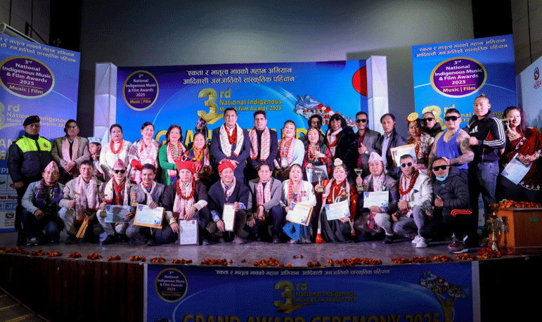 काठमाडौं -तेस्रो राष्ट्रिय आदिवासी संगीत एवम् चलचित्र अवार्ड २०८२ काठमाडौँमा सम्पन्न भएको छ ।चलचित्र र गीत संगीतको विभिन्न ३२ विधामा अवार्ड प्रदान गर्दै तेस्रो राष्ट्रिय आदिवासी संगीत एवम् चलचित्र अवार्ड २०८२ काठमाडौँमा सम्पन्न भएको हाे ।
