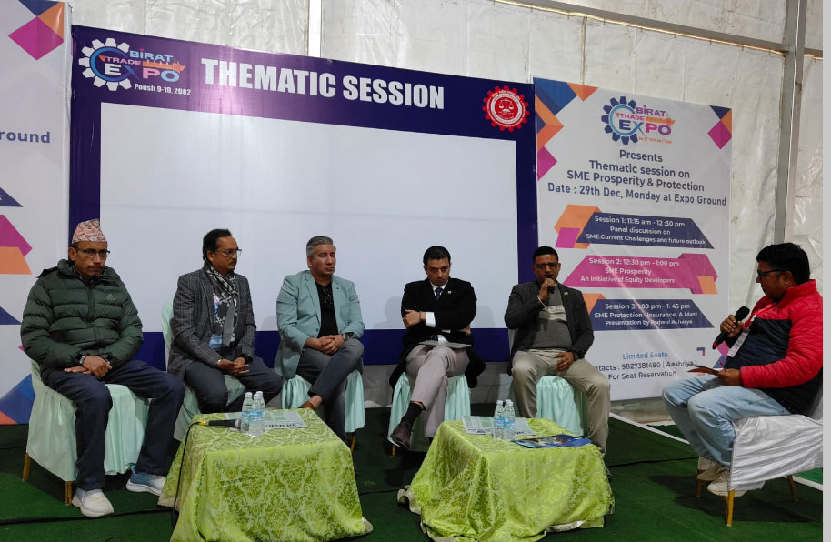 विराटनगर- विराट ट्रेड एक्स्पोअन्तर्गत सोमबार साना तथा मझौला उद्योग (एसएमई) को समृद्धि तथा संरक्षणलाई केन्द्रमा राखेर थिमेटिक सेसन सम्पन्न भएको छ। “साना तथा मझौला उद्योगको समृद्धि तथा संरक्षण” शीर्षकमा आयोजित प्यानल छलफलमा उद्योग, लगानी, नीति, प्रविधि र बजार पहुँचका विविध पक्षमा साना तथा मझौला उद्योगको समृद्धि र संरक्षणका निम्ति नीतिगत सुधार र सहज लगानीमा जोड दिइएकाे हाे ।