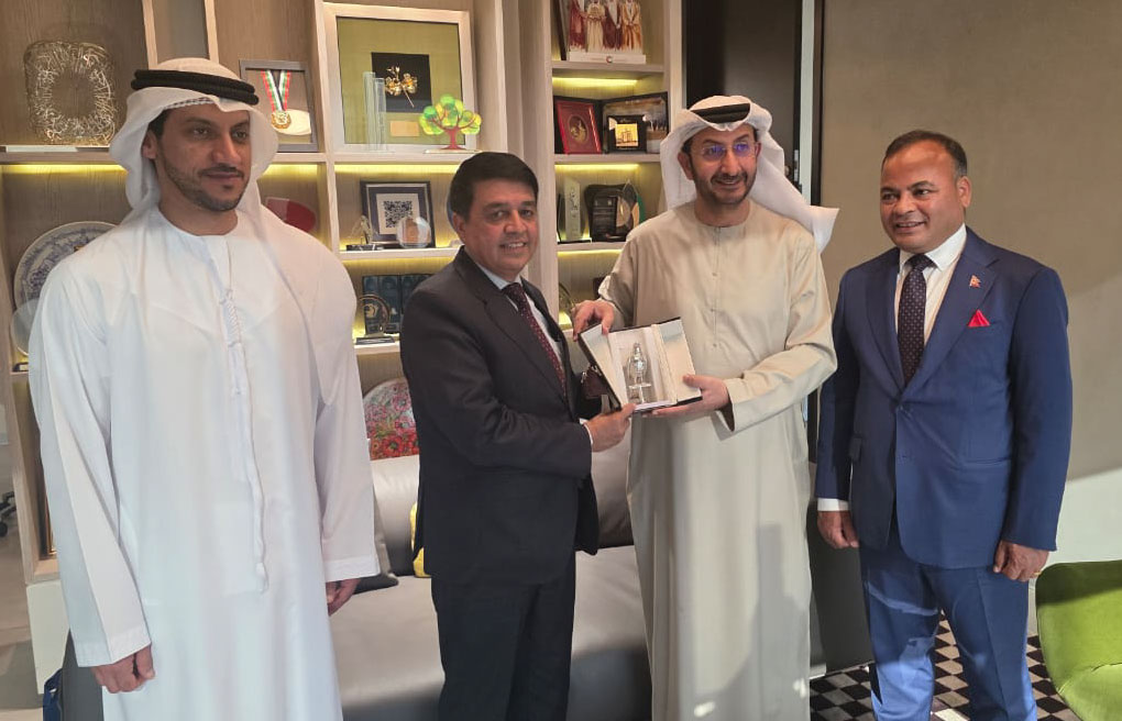 संयुक्त अरब इमिरेट्स (यूएई) का लागि नेपाली महामहिम राजदूत तेजबहादुर क्षेत्रीको उपस्थितिमा सम्पन्न भेटवार्तामा दुवै पक्षले आगामी दिनमा नेपाल-यूएई आर्थिक सहकार्यलाई थप प्रभावकारी बनाउँदै पारस्परिक लाभका साझेदारीहरू अघि बढाउने प्रतिबद्धता व्यक्त गरेका छन् ।