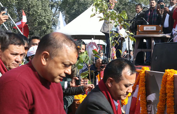 काठमाडौं - नेपाली कांग्रेस महामन्त्रीद्वय गगन थापा विश्वप्रकाश शर्माले विशेष महाधिवेशनको उद्घाटन गरेका छन्। काठमाडौंको भृकुटीमण्डपमा आयोजित कार्यक्रममा महामन्त्रीद्वयले दीप प्रज्ज्वलनसहित विरुवामा पानी हाली बेलुन उडाएर महाधिवेशनको उद्घाटन गरेका हुन्।