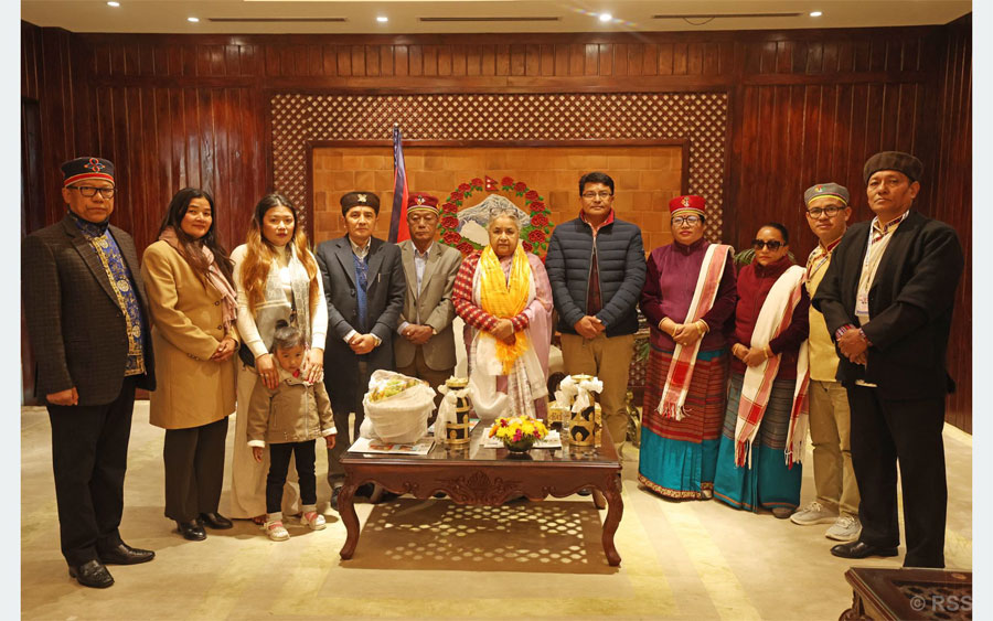 काठमाडौं - प्रधानमन्त्री सुशीला कार्कीसँग नेपाल तामाङ घेदुङको प्रतिनिधिमण्डलले भेट गरेको छ । आज बिहान भएको भेटका क्रममा तामाङ समुदायको जनसङ्ख्या, संस्कृति, आर्थिक–सामाजिक अवस्थालगायत विषयमा चर्चा भएको प्रधानमन्त्रीका प्रेस सल्लाहकार रामबहादुर रावलले जानकारी दिउ ।
