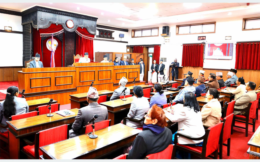 उनले अधिवेशन आह्वानसम्बन्धी राष्ट्रपति कार्यालयबाट प्राप्त पत्र वाचन गरेर सुनाए । त्यसलगत्तै लोकतन्त्रका लागि योगदान पुर्याउने सहिदहरूप्रति सम्मानका लागि मौन धारण गरियो । बैठकले सभाका सदस्य वलदेव बोहराको निधनप्रति शोकप्रस्ताव पारित गरेको छ । विसं २००८ मा जन्मिएका कञ्चनपुर निवासी बोहराको गत पुस ३० निधन भएको थियो ।
