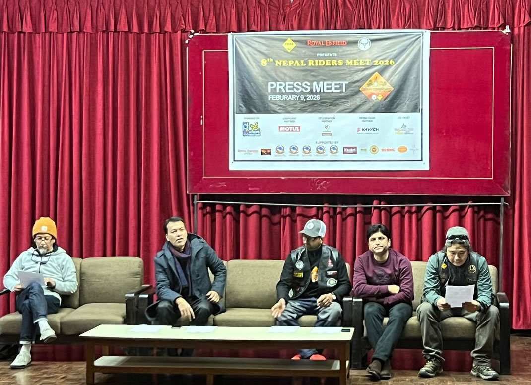 काठमाडौं - नेपालको साहसिक र अनुभवमा आधारित पर्यटन प्रबर्द्धन गर्ने उद्देश्यले ललितपुरमा आठौं नेपाल राइडर्स मिट हुने भएको छ । नेपाल पर्यटन बोर्डको सभा हलमा सोमबार आयोजित पत्रकार सम्मेलनमार्फत् आगामी फागुन २ देखि ४ गतेसम्म ललितपुरको गोदागरी २ स्थित चापखर्कमा नेपाल राइडर्समिट हुने आयोजक द हिमालयन मोटरसाइकल एक्सपेरियन्सका संयोजक अर्जुन थापाले जानकारी गराएका छन् ।