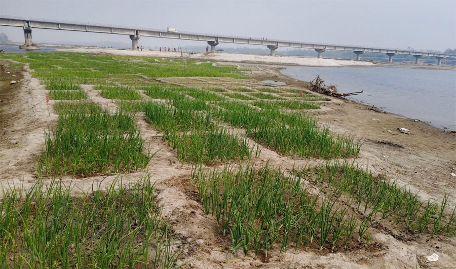 कैलालीको टीकापुर र बर्दियाको राजापुर नगरपालिका जोड्ने सत्ती पुल आसपास क्षेत्रमा आजभोलि हरियाली छ । ढुङ्गा नभएको बालुवा भएको क्षेत्रमा सानासाना प्लट बनाइएका छन् । जहाँ लहरै प्याजको खेती छ । वडा नं ८ फाँटागाउँका ५०–६० घरपरिवारले कर्णाली नदी किनार तथा टापुमा प्याजखेती गर्दै आएका छन् । बर्सेनि उक्त सङ्ख्या बढ्दै गएको देखिन्छ । बगरबाट बर्सेनि लगभग ७०० क्विन्टल बढी प्याज उत्पादन हुने गरेको छ ।