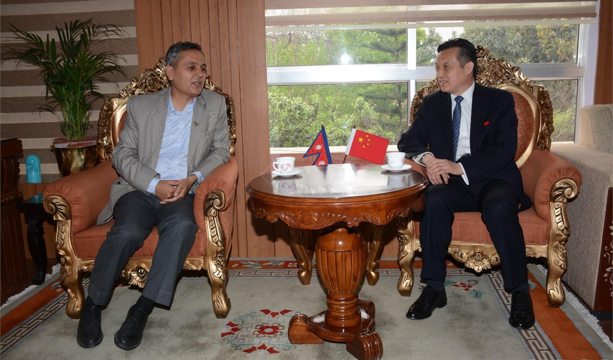 काठमाडौं- गृहमन्त्री ओमप्रकाश अर्यालसँग नेपालका लागि चिनियाँ राजदूत चाङ माओमिङले उनको कार्यकक्षमा शिष्टाचार भेट गरेका छन् ।