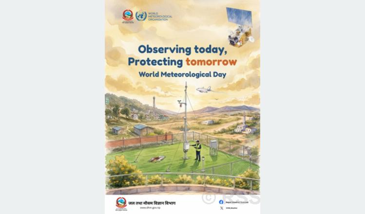 काठमाडौं - ‘आजको अवलोकन, भोलिको सुरक्षा’ भन्ने नाराका साथ नेपालमा पनि विविध कार्यक्रम आयोजना गरी विश्व जल तथा मौसम दिवस मनाइँदै छ । सन् १९५० मा विश्व मौसम विज्ञान सङ्गठनको स्थापना भएको दिनको सम्झनामा सन् १९६१ देखि यो दिवस मनाउन थालिएको हो ।
