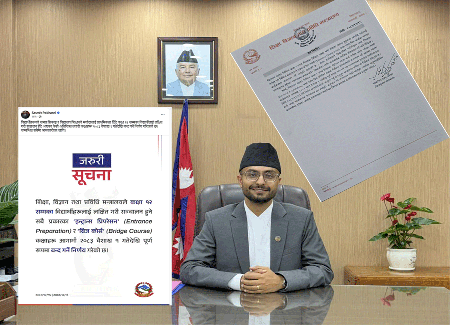 आगामी १ वैशाखबाट लागू हुनेगरी बन्द गर्ने निर्णय गरेको थियो । तर सोमबार उक्त सूचना मन्त्रालयको वेबसाइटबाट हटाइएको छ । मन्त्रालयका अनुसार थप प्रष्टता पार्नको लागि हटाइएको हो । ब्रिज कोर्स हटाउने निर्णयबाट मन्त्रालय ब्याक नभएको मन्त्रालयले जनाएकाे छ।