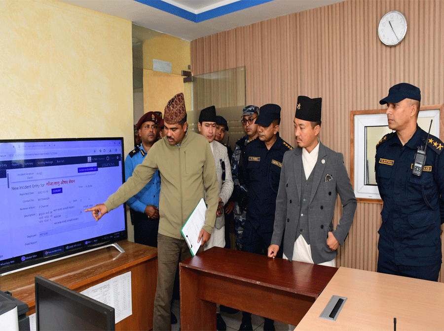काठमाडौं- गृहमन्त्री सुधन गुरुङले जिल्ला प्रहरी परिसर कार्यालय, काठमाडौँको निरीक्षण गरेका छन् । उनले आज प्रहरी कार्यालयको निरीक्षण गर्दै जिम्मेवार र पारदर्शी भएर जनहितमा काम गर्न प्रहरी कर्मचारीलाई निर्देशन दिए । उनलाई उच्चपदस्थ प्रहरी कर्मचारीले स्वागत गरेका थिए ।