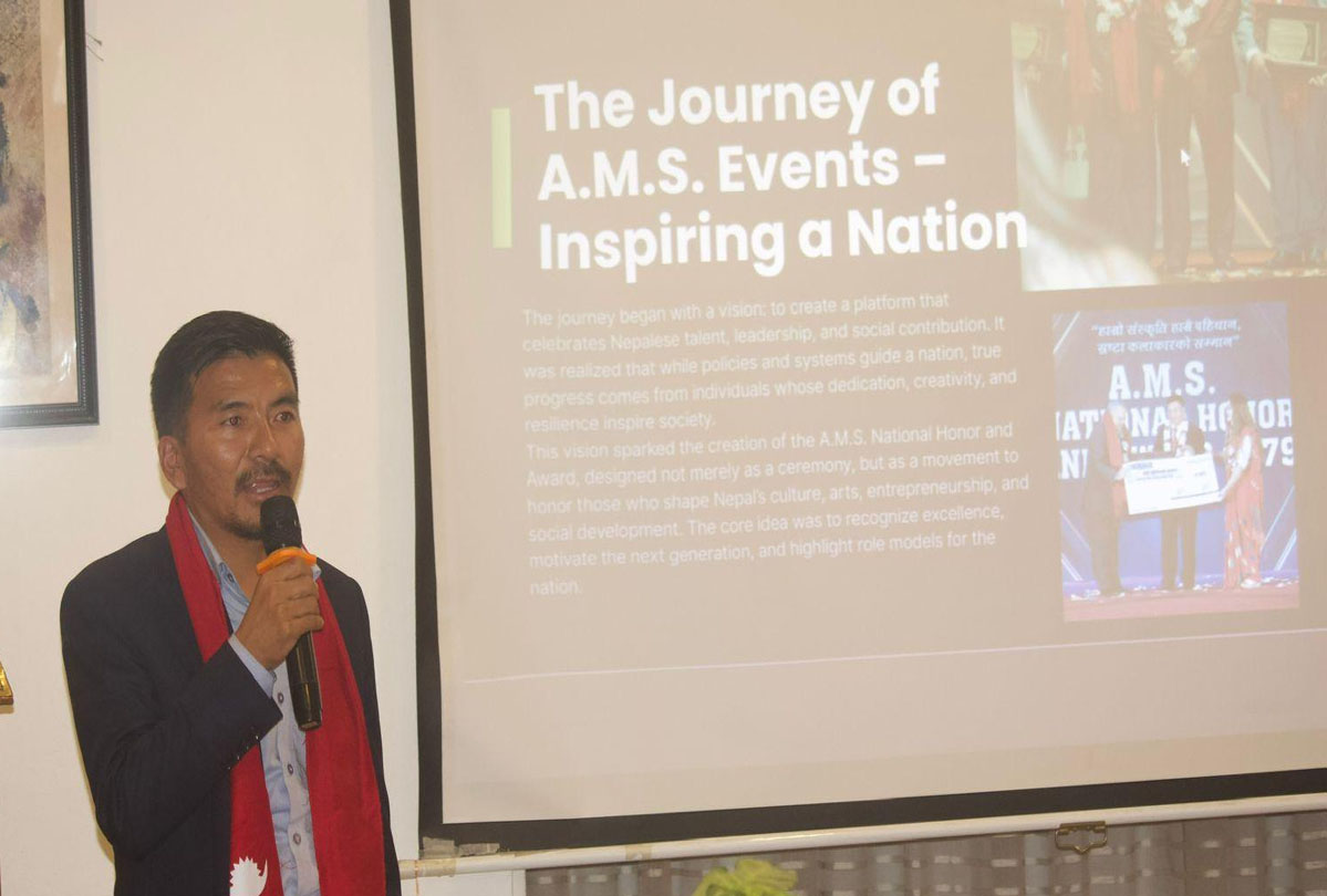 एएमएस ग्लोबल हिमालय फाउन्डेसनले आगामी मे २९ मा काठमाडौँमा आयोजना गर्न लागेको एभरेष्ट टुरिज्म एवार्ड र वल्ड पिस समिटका बारेमा उद्यमी, व्यवसायी जानकारी दिन यहाँ आयोजित कार्यक्रममा उनले पर्यटन क्षेत्रमा लगानी बढाउन पनि यस किसिमका कार्यक्रमहरुको आयोजना गर्नु आवश्यक रहेको बताए ।